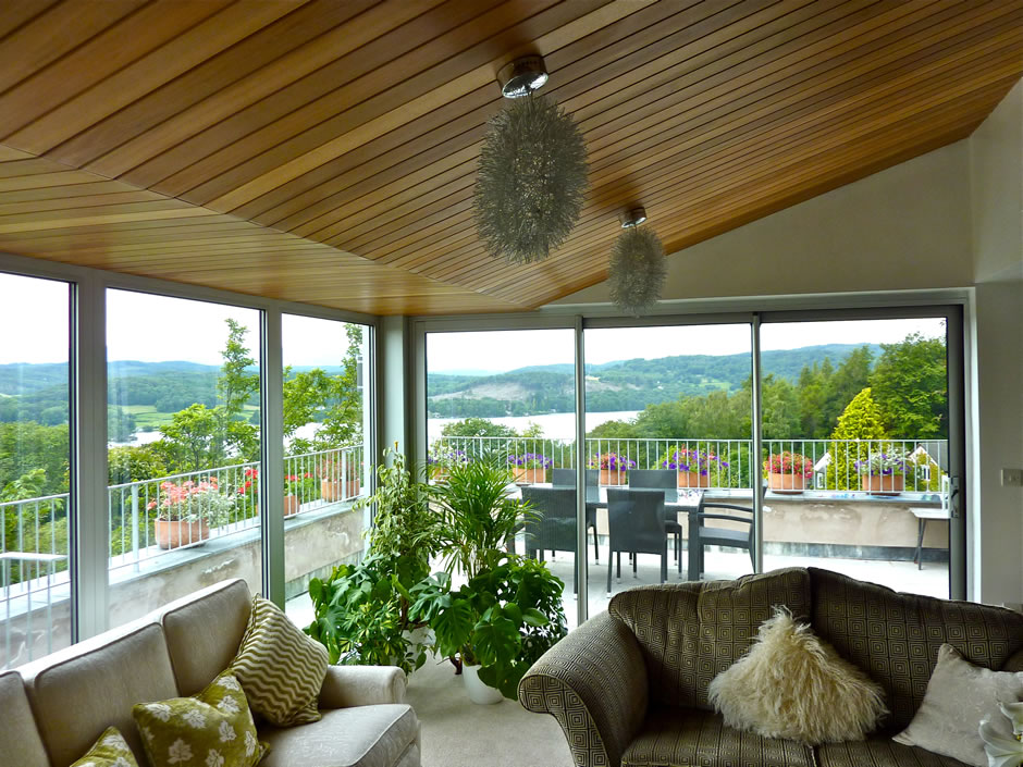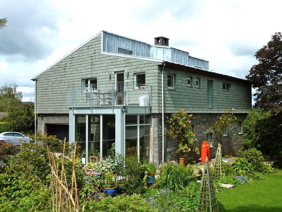 Green Dod was built by an architect for his family’s occupation and remained unchanged for nearly 40 years until the death of his widow. The building was designed in a ‘Brutalist’ style popular in the early 1970’s and is a fairly unique building in the Lake District National Park. Our clients purchased the property in early 2010 and wanted to work with the architectural language of the building to update and extend the accommodation. The project took place in two phases. The initial phase was concerned with refurbishing the existing building, creating an enlarged kitchen and renewing bathrooms and services. The second phase extended the house to create additional space to the Living Room, a large terrace, and a Master Bedroom suite. The new extension was designed to use existing materials and architectural forms. A zinc sheet roof, detailed to match the existing roof, anodised aluminium cladding and windows, galvanised steel balustrades and steps, and battered dressed slate walls were all chosen to complement the existing building fabric. Project Completed: 2011